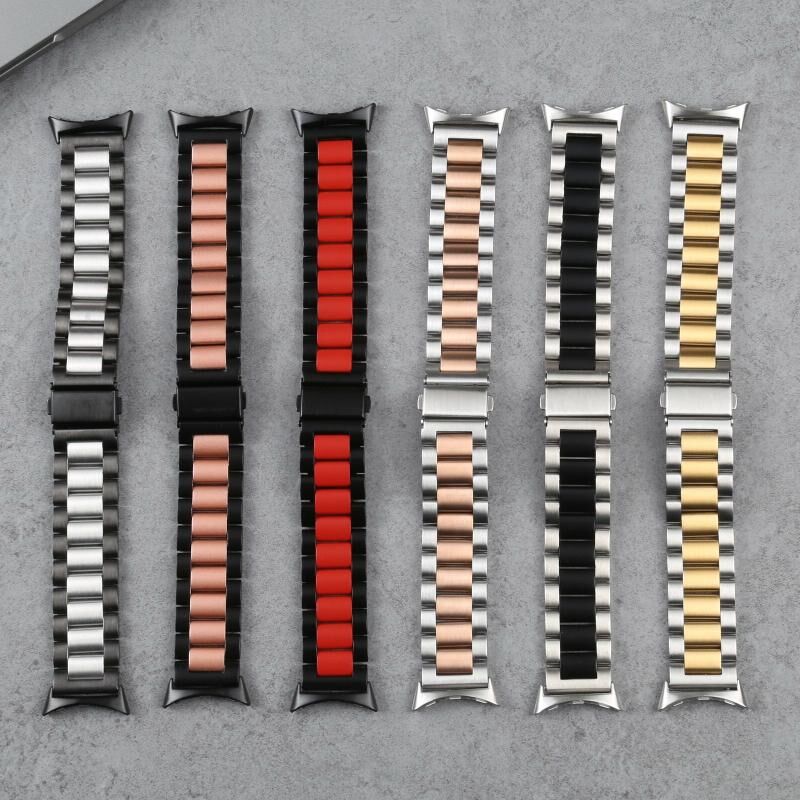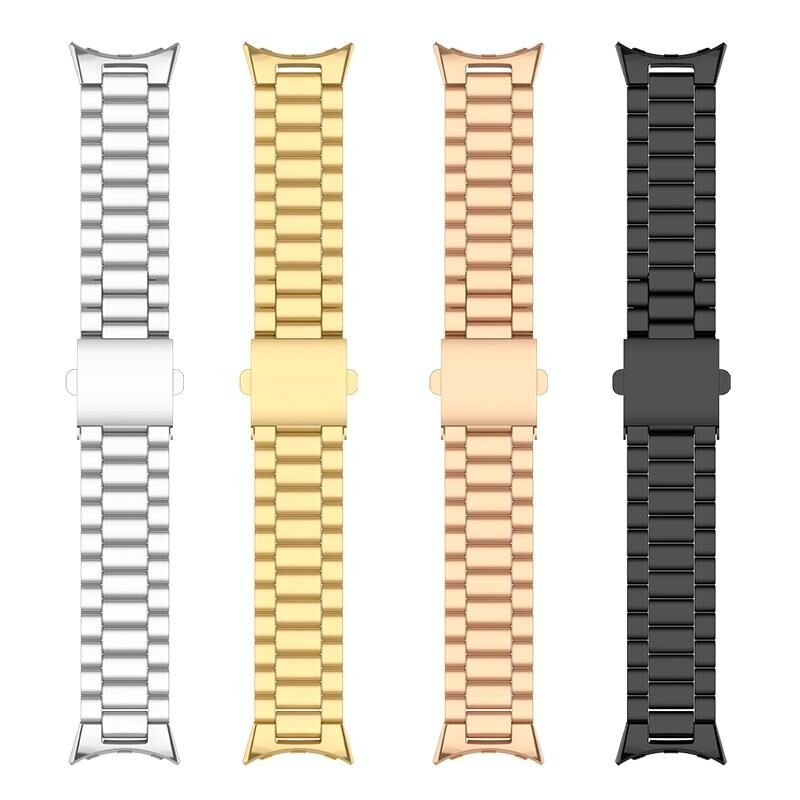 For Google Pixel Watch Three Strains Stainless Steel Metal Watch Band (Pink)