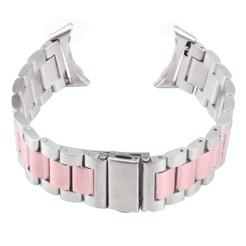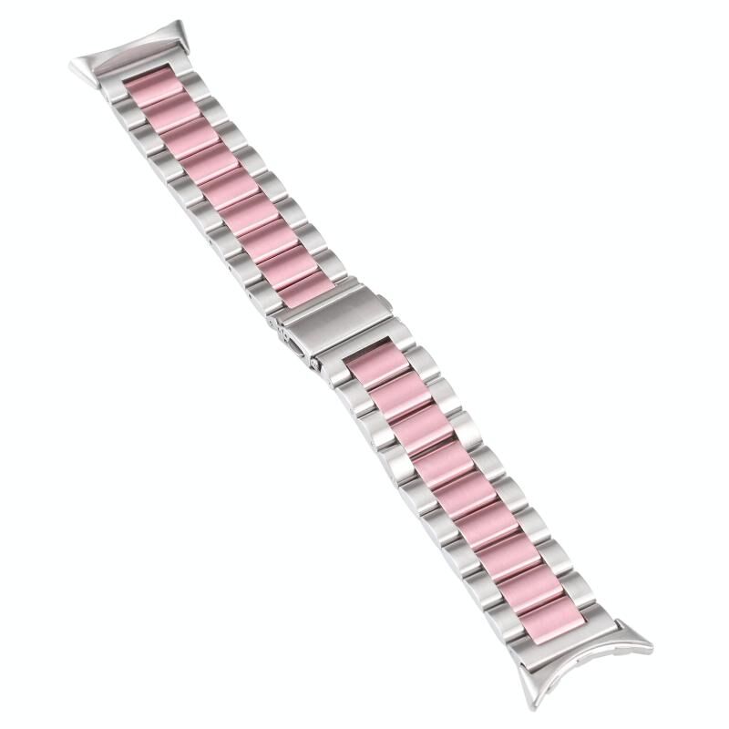 For Google Pixel Watch Three Strains Stainless Steel Metal Watch Band (Pink)