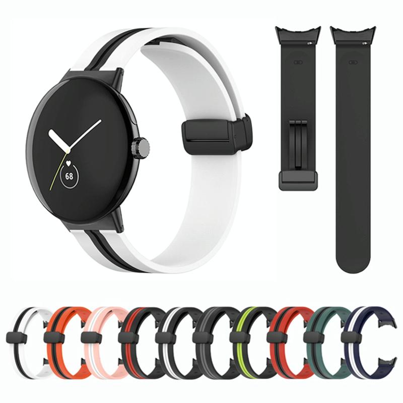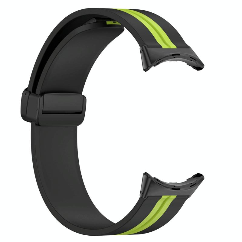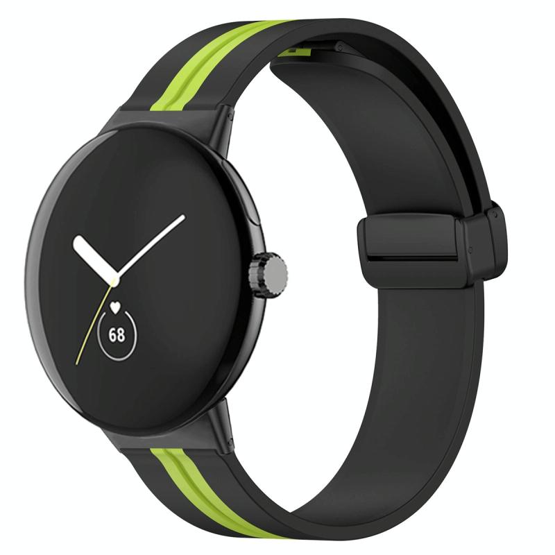 For Google Pixel Watch Two-color Folding Buckle Silicone Watch Band(Black Green)