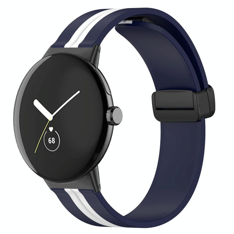 For Google Pixel Watch Two-color Folding Buckle Silicone Watch Band(Blue White)
