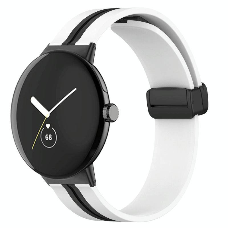 For Google Pixel Watch Two-color Folding Buckle Silicone Watch Band(White Black)