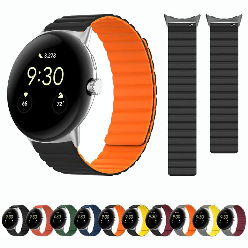For Google Pixel Watch Two-section Magnetic Silicone Watch Band(Black Yellow)