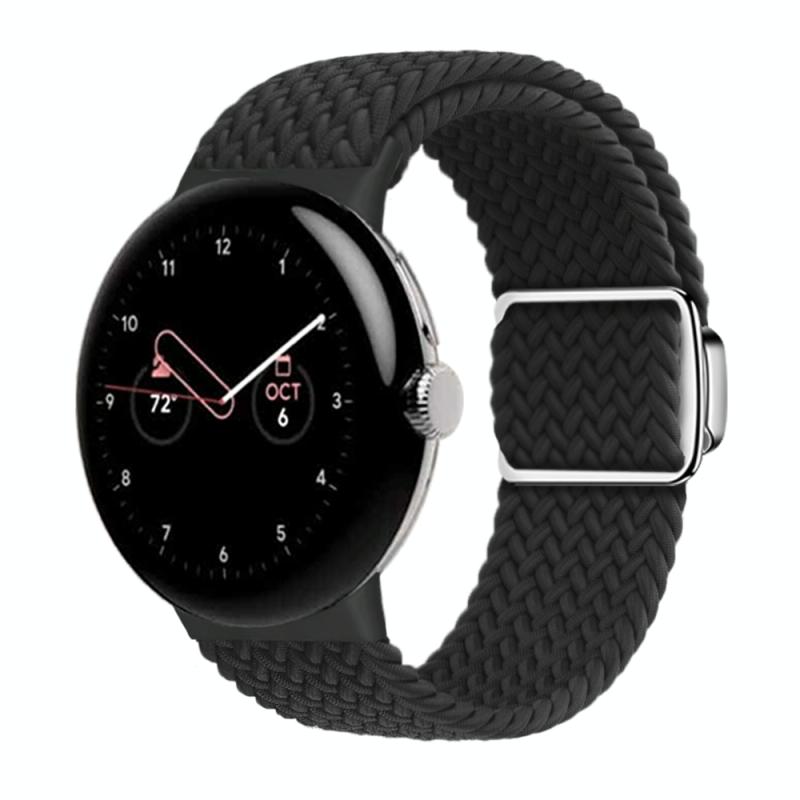 For Google Pixel Watch / Watch 2 Nylon Loop Magnetic Buckle Watch Band(Black)