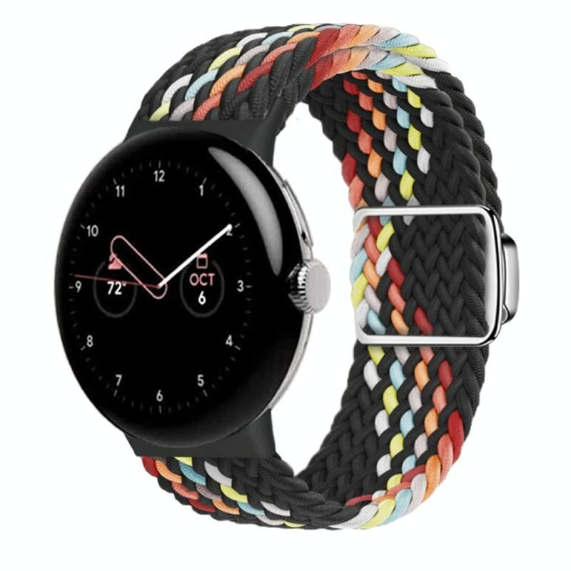 For Google Pixel Watch / Watch 2 Nylon Loop Magnetic Buckle Watch Band(Black Rainbow)
