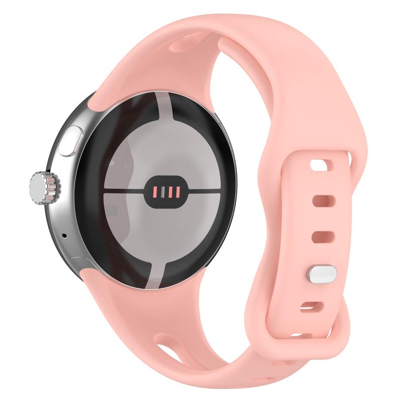 For Google Pixel Watch Water Drop Slimming Butterfly Button Solid Silicone Band(Light Pink)
