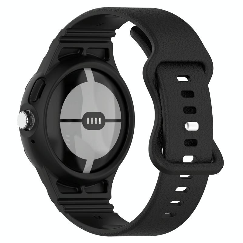 For Goolge Pixel Watch 2 Leather Texture Silicone Integrated Watch Band(Black)