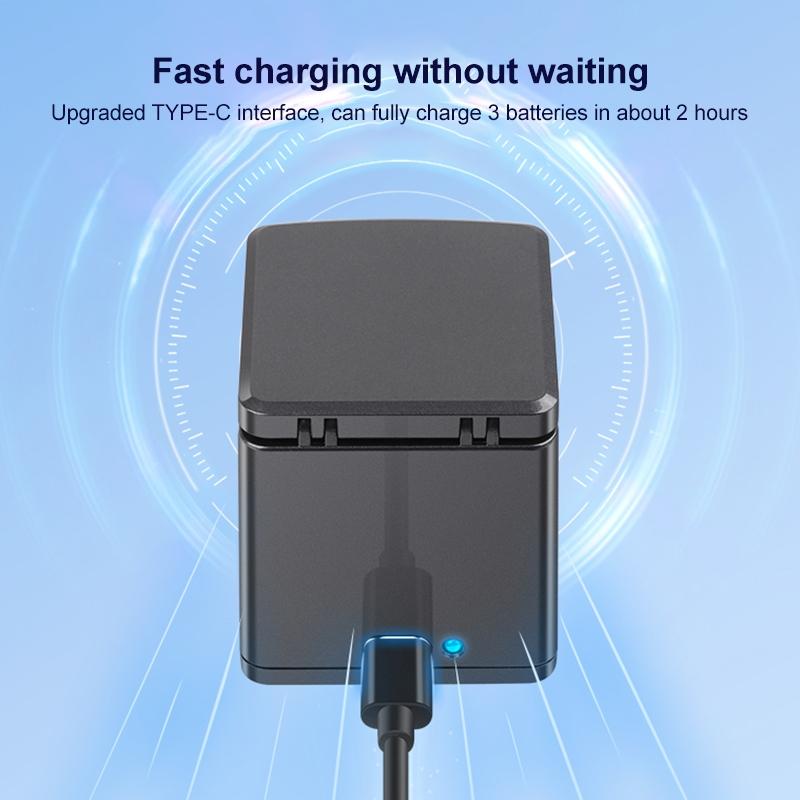 2. The charger adopts Type-C interface, 3A high current, supports fast charging, and can fully charge 3 batteries in 2.0 hours