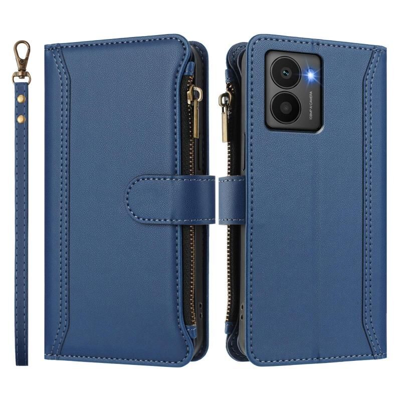 For HMD Fuison Magnetic Closure 9 Card Slots Zipper Leather Case with Hand Strap(Dark Blue)