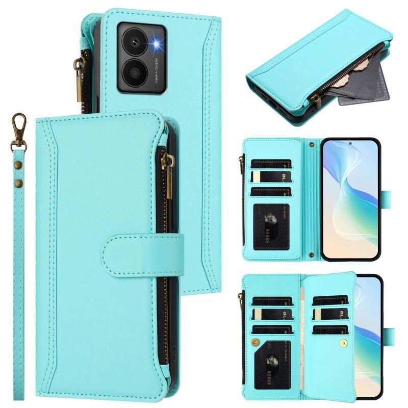 For HMD Fuison Magnetic Closure 9 Card Slots Zipper Leather Case with Hand Strap(Mint Green)