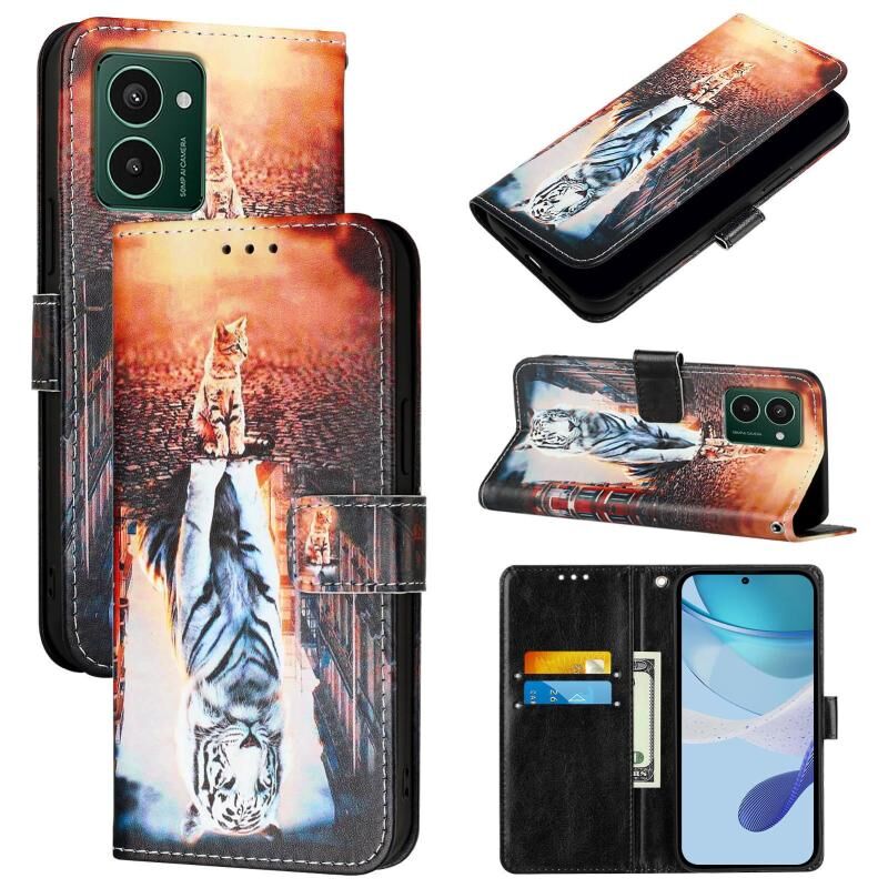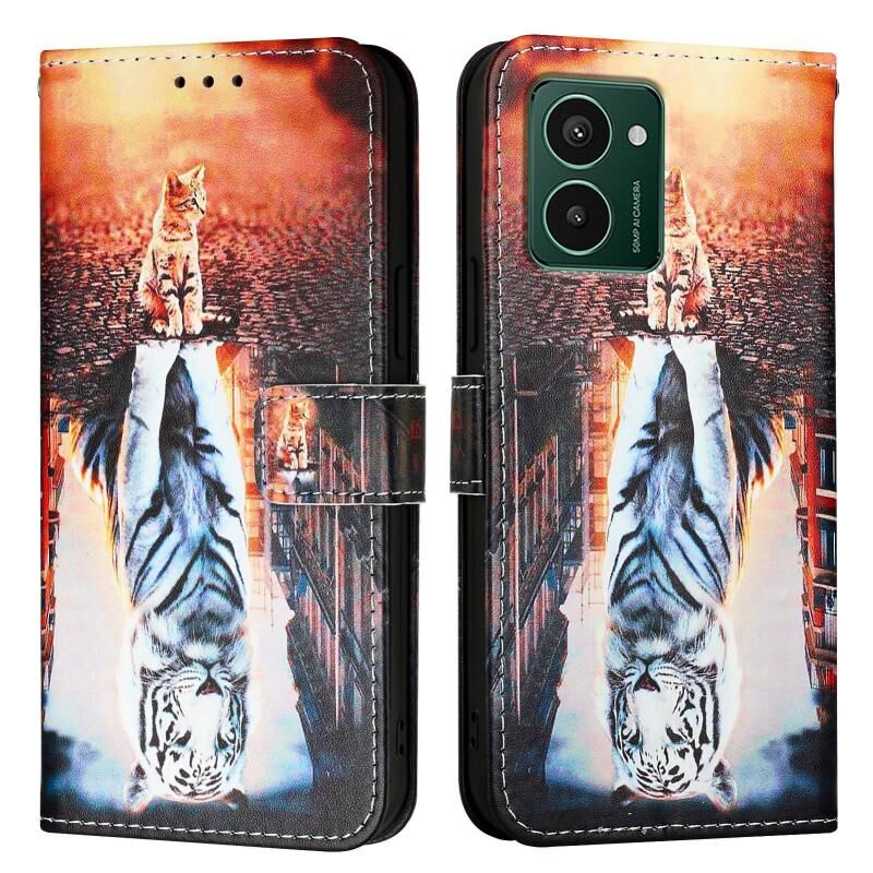 Θήκη τηλεφώνου από δέρμα απλής ύφανσης για HMD Pulse Pro με έγχρωμο σχέδιο σχεδίασης (Γάτες και Τίγρεις)