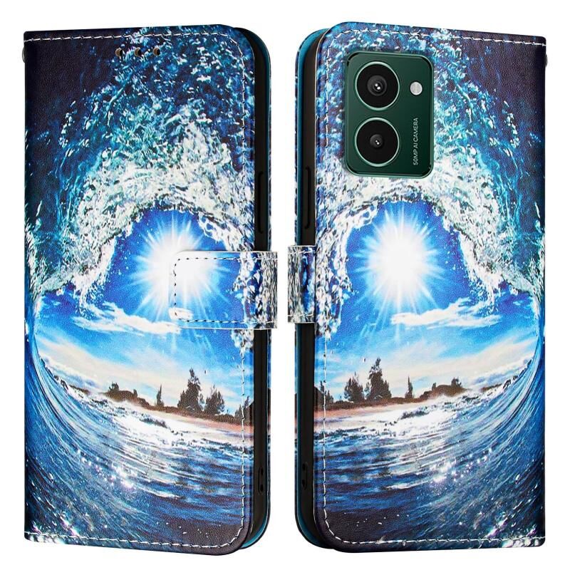 Θήκη τηλεφώνου από δέρμα απλής ύφανσης για HMD Pulse Pro με έγχρωμο σχέδιο σχεδίασης (Κύματα και Ήλιος)