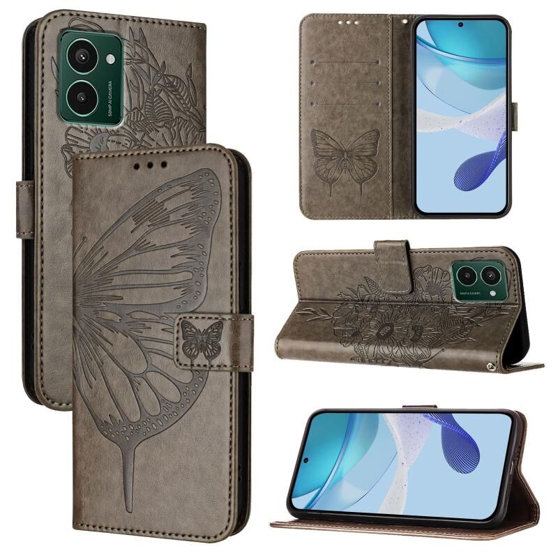 Για HMD Pulse Pro ανάγλυφη πεταλούδα δερμάτινη θήκη τηλεφώνου (γκρι)