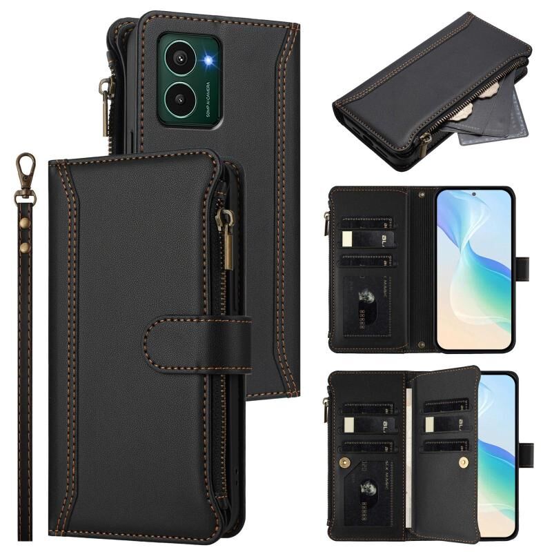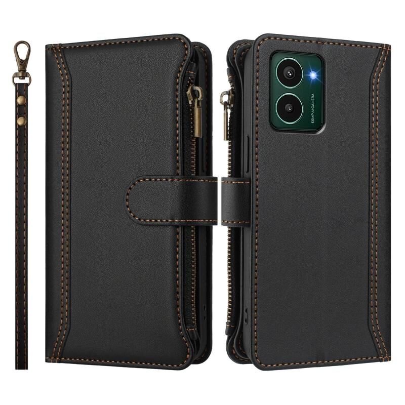 For HMD Pulse Pro / HMD Pulse Magnetic Closure 9 Card Slots Zipper Leather Case with Hand Strap(Black)