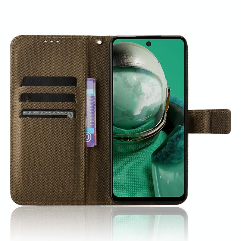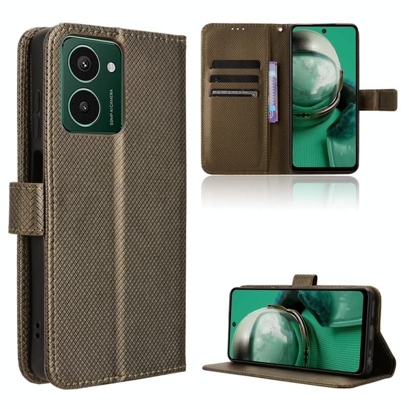 Για HMD Pulse Pro / Pulse / Pulse+ Διαμαντένια υφή δερμάτινη θήκη τηλεφώνου (καφέ)