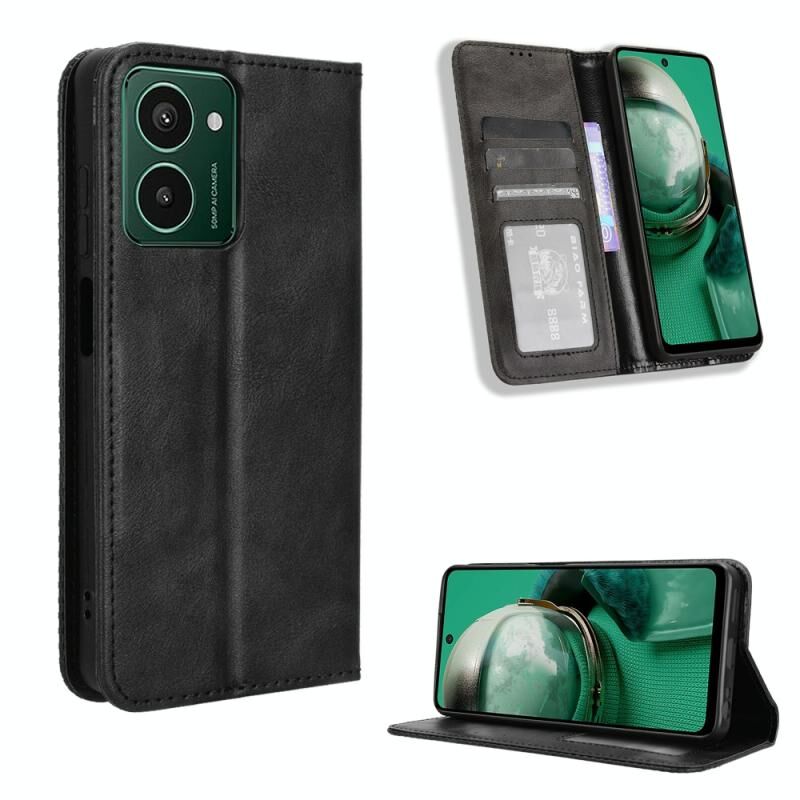 Για HMD Pulse Pro / Pulse / Pulse+ Μαγνητική πόρπη Retro Υφή δερμάτινη θήκη τηλεφώνου (μαύρο)