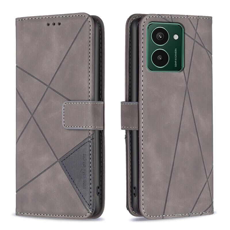 Για HMD Pulse PRO / Pulse / Pulse+ Μαγνητική πόρπη Rhombus Texture Δερμάτινη θήκη τηλεφώνου (γκρι)
