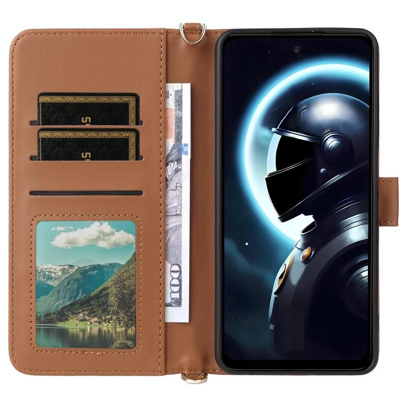 2. Λειτουργία πορτοφολιού: Η δερμάτινη θήκη είναι εξοπλισμένη με 6 υποδοχές καρτών, 1 υποδοχή για μετρητά και 1 κορνίζα για την τοποθέτηση καρτών και ενός μικρού ποσού μετρητών.