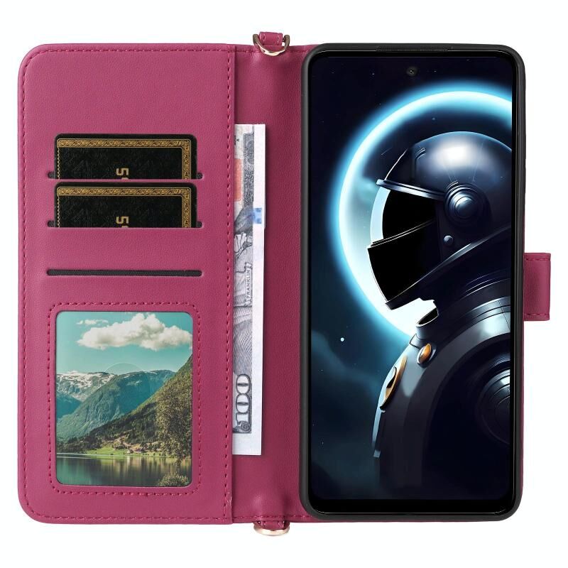 Θήκη τηλεφώνου από δέρμα με 6 υποδοχές καρτών και λουρί καρπού για HMD Pulse / Pulse Pro / Pulse+ (Ροζ)