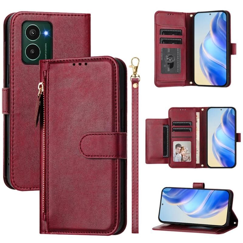 For HMD Pulse / Pulse+ / Pulse Pro Multi-Card Slots Zipper Wallet Leather Phone Case(Dark Red)