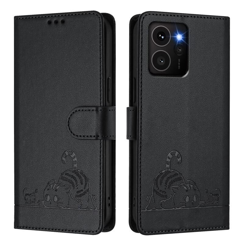 Θήκη τηλεφώνου από δέρμα με ανάγλυφο σχέδιο, με κορδόνι, για HMD Skyline Cat Rat με τεχνολογία RFID (Μέντας Πράσινο)