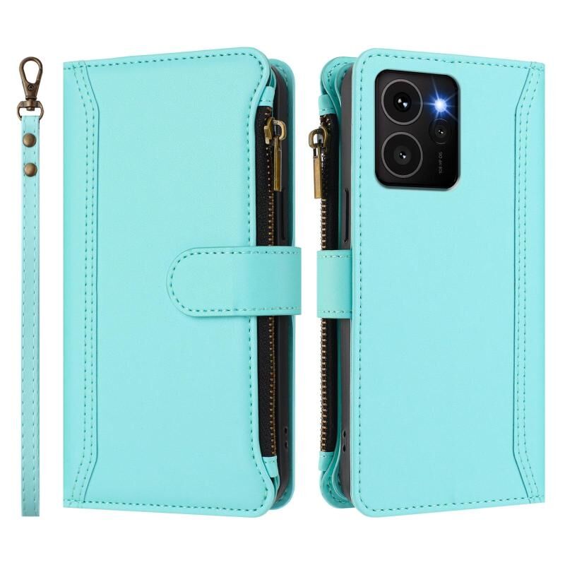 For HMD Skyline Magnetic Closure 9 Card Slots Zipper Leather Case with Hand Strap(Mint Green)