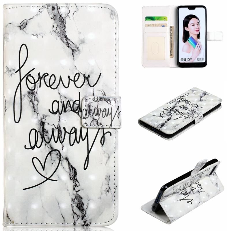 Θήκη τηλεφώνου δερμάτινη με ανάγλυφο σχέδιο 3D για Honor 10 (Μάρμαρο Λέξεων)