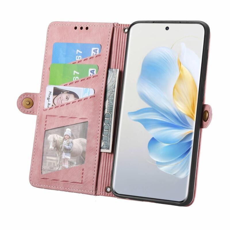 Για Honor 100 5G γεωμετρική φερμουάρ πορτοφόλι πλευρά πόρπη δερμάτινη θήκη τηλεφώνου (ροζ)