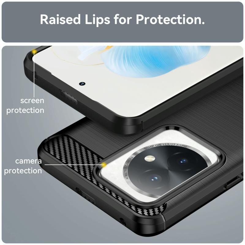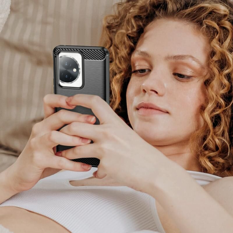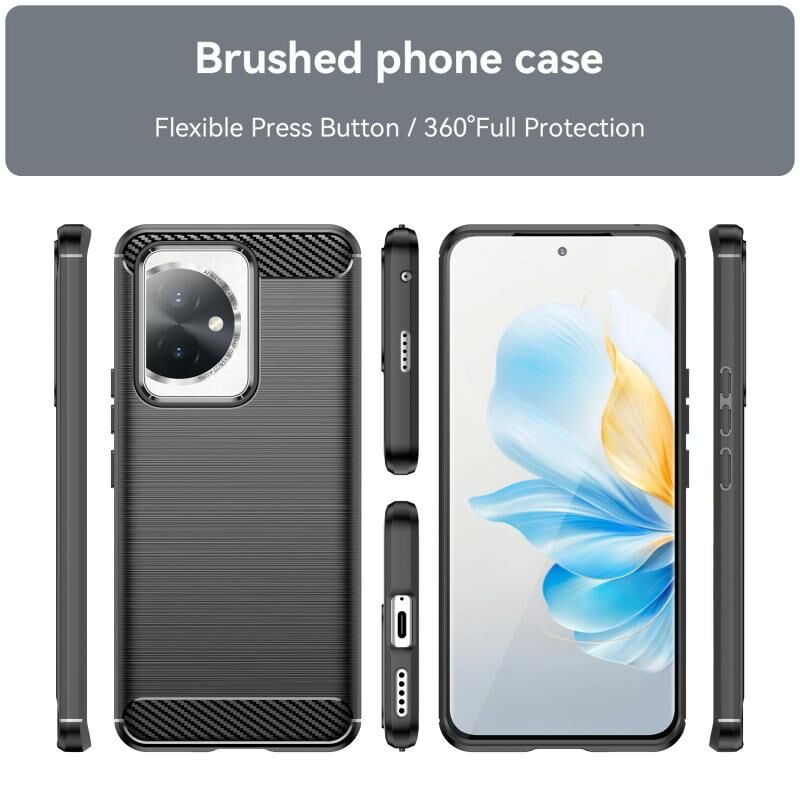 Για Honor 100 βουρτσισμένη υφή Carbon Fiber TPU τηλέφωνο υπόθεση (μαύρο)