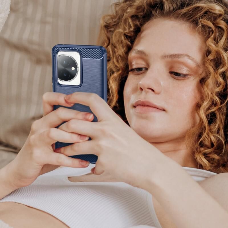 Για Honor 100 βουρτσισμένη υφή Carbon Fiber TPU τηλέφωνο υπόθεση (μπλε)