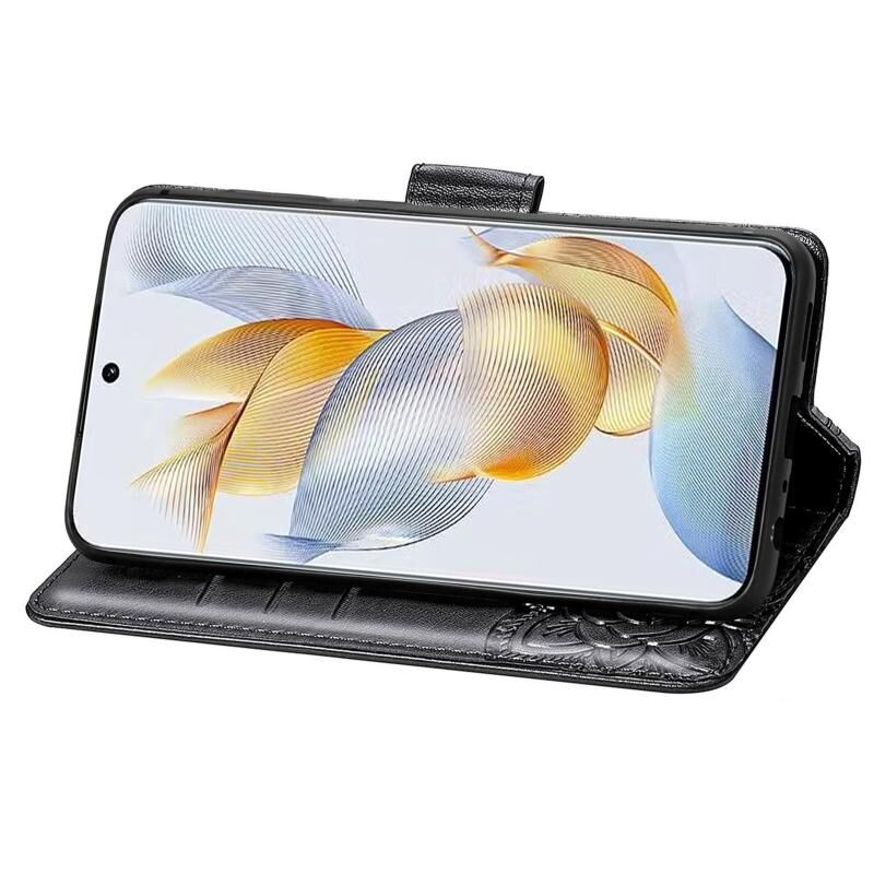 Θήκη τηλεφώνου από δέρμα με ανάγλυφο σχέδιο πεταλούδας και λουλουδιών για Honor 100 (Χρυσό ροζ)