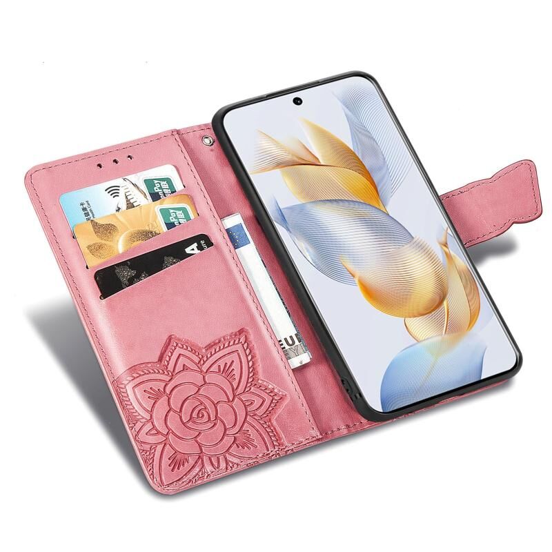 Θήκη τηλεφώνου από δέρμα με ανάγλυφο σχέδιο πεταλούδας και λουλουδιών για Honor 100 (Χρυσό ροζ)