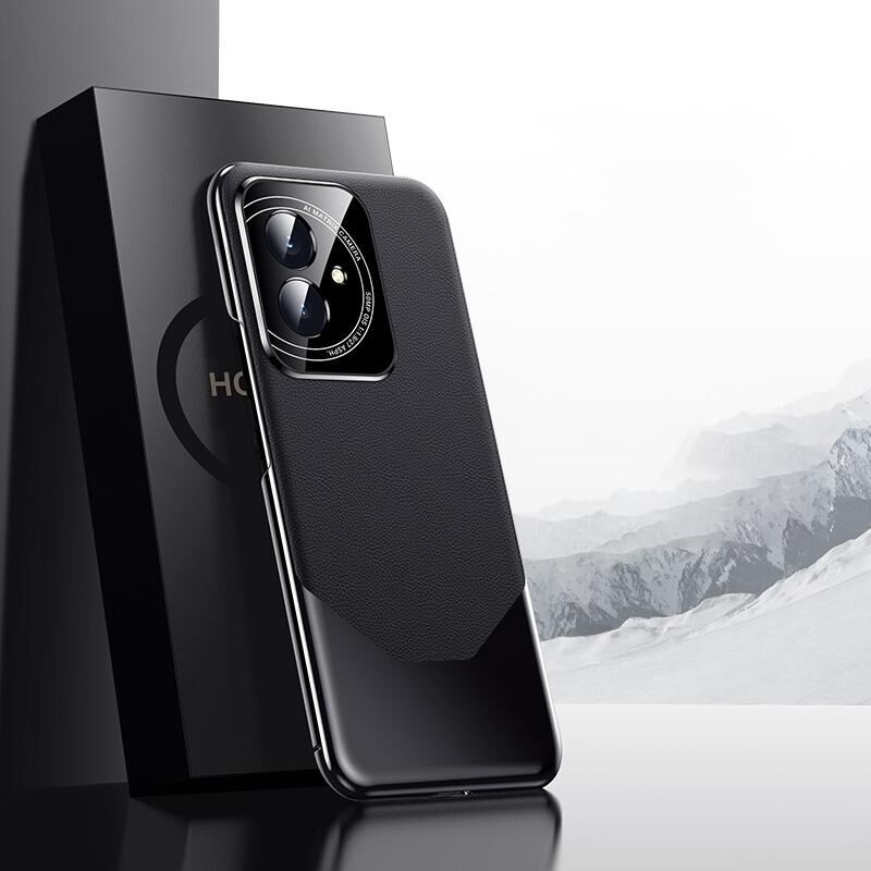 Για Honor 100 Electroplated απομίμηση Ultimate Design PC + δερμάτινη θήκη τηλεφώνου (Μαύρο)