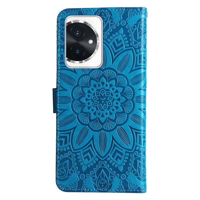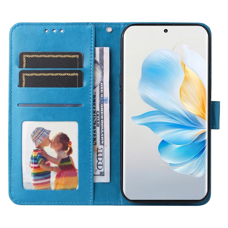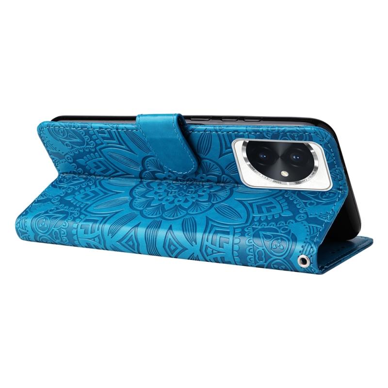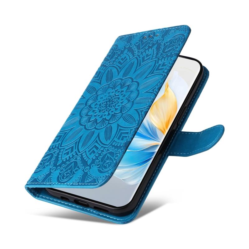 For Honor 100 Embossed Sunflower Leather Phone Case(Blue)