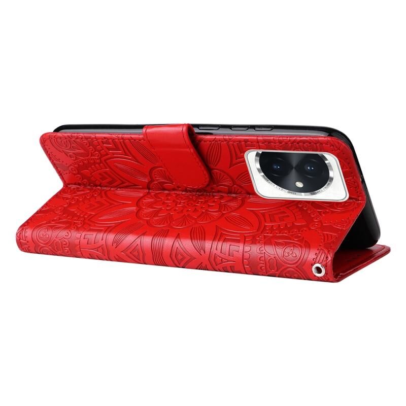 Θήκη τηλεφώνου Honor 100 με ανάγλυφο σχέδιο ηλίανθου από δέρμα (Κόκκινο)