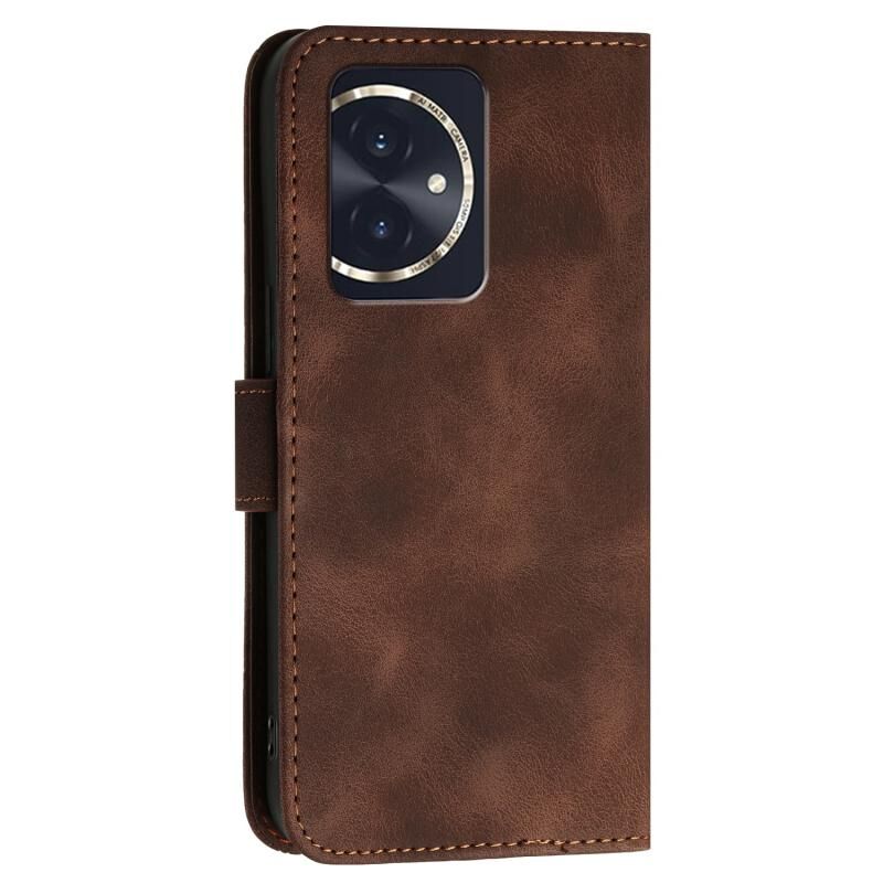 Θήκη κινητού τηλεφώνου Honor 100 με δέρμα και ανάγλυφο σχέδιο πεταλούδας σε πλέγμα, με κορδόνι (Καφέ)
