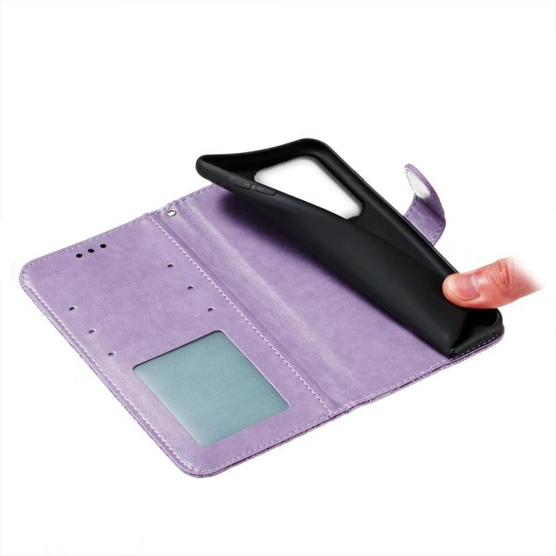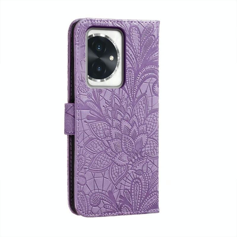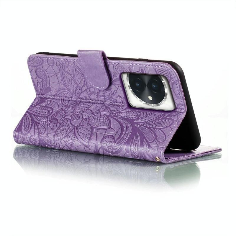 Για Honor 100 Δαντέλα λουλούδι ανάγλυφο Flip υπόθεση τηλεφώνου δέρμα (μωβ)