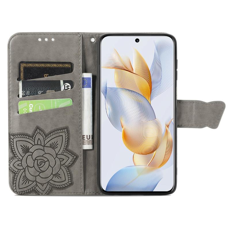 For Honor 100 Pro 5G Butterfly Love Flower Embossed Leather Phone Case(Gray)