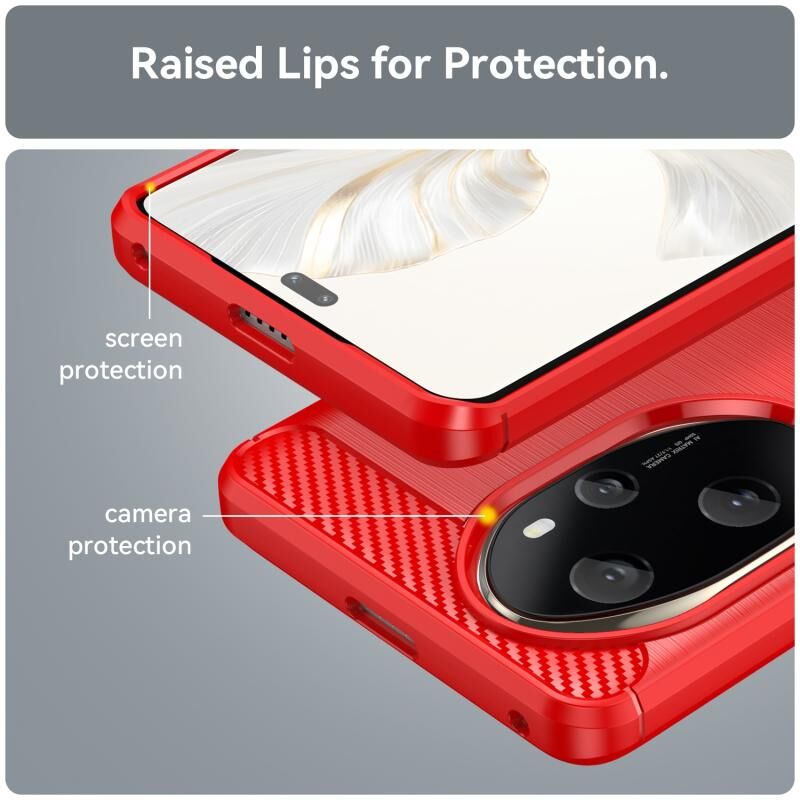 Για Honor 100 Pro βουρτσισμένη υφή Carbon Fiber TPU τηλέφωνο υπόθεση (κόκκινο)