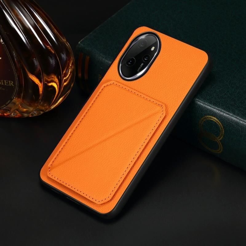 For Honor 100 Pro D04 Calf Texture Dual Card Slot Holder Phone Case(Orange)