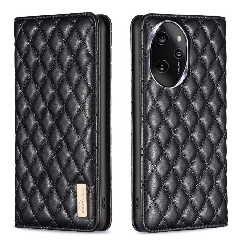 For Honor 100 Pro Diamond Lattice Magnetic Leather Flip Phone Case(Black)