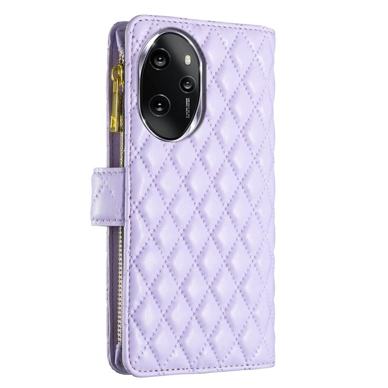 For Honor 100 Pro Diamond Lattice Zipper Wallet Leather Flip Phone Case(Purple)