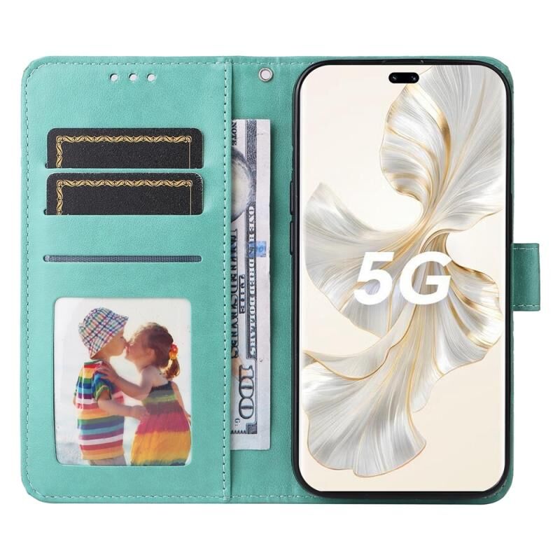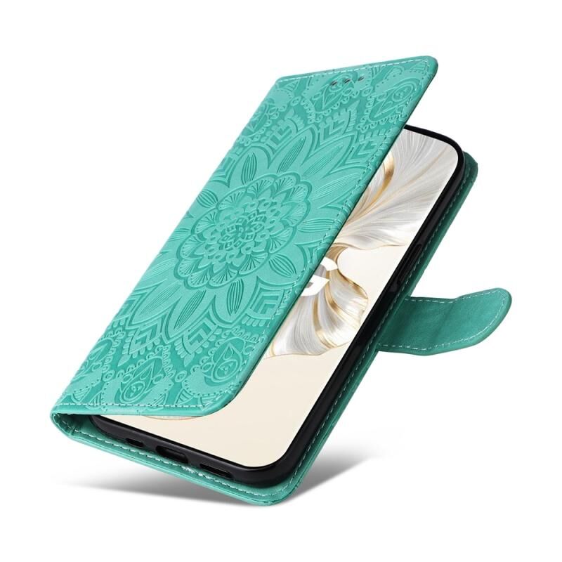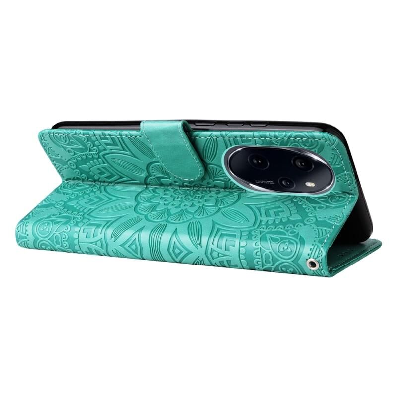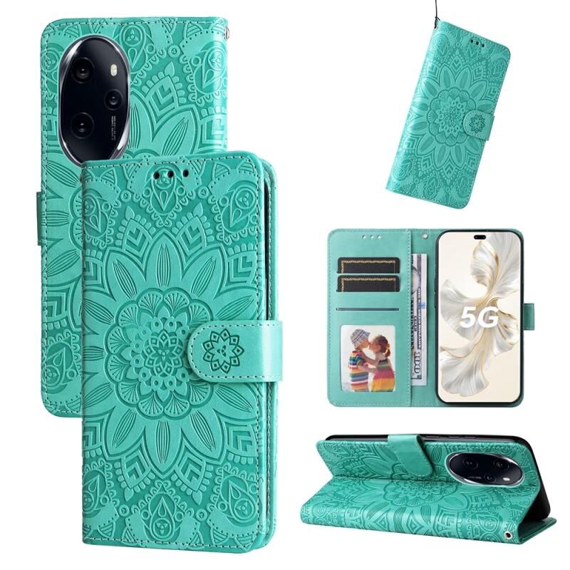 Θήκη τηλεφώνου Honor 100 Pro με ανάγλυφο σχέδιο ηλίανθου από δέρμα (Κόκκινο)