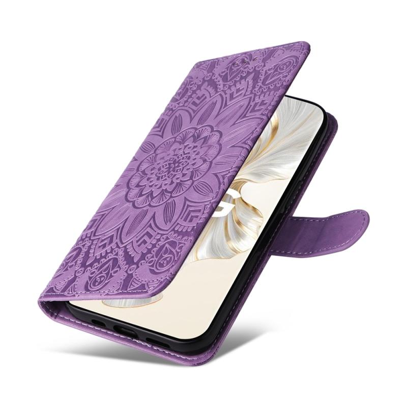 For Honor 100 Pro Embossed Sunflower Leather Phone Case(Purple)