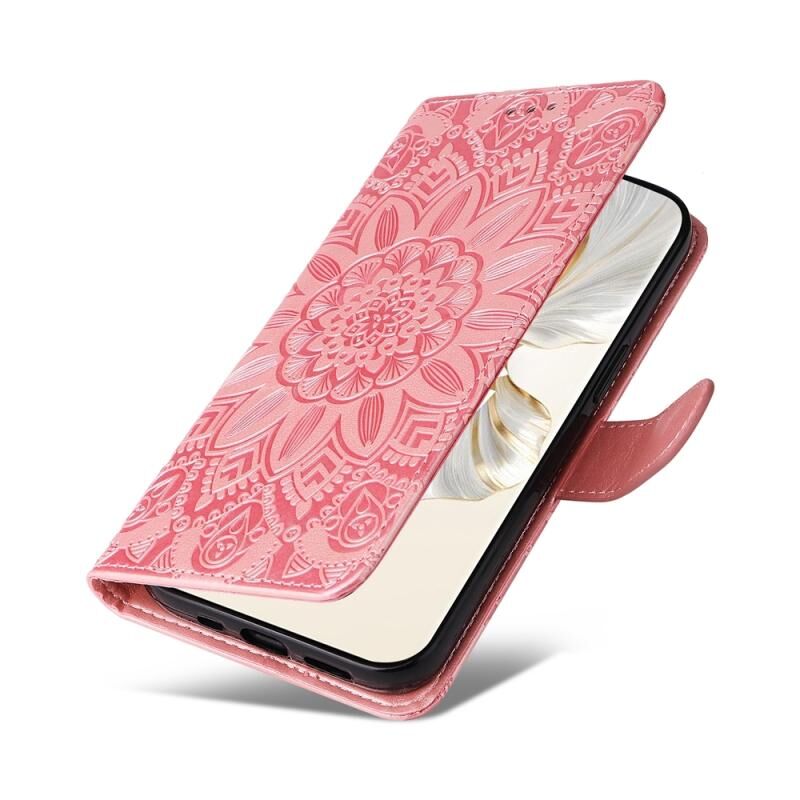 Θήκη τηλεφώνου Honor 100 Pro με ανάγλυφο σχέδιο ηλίανθου από δέρμα (Κόκκινο)