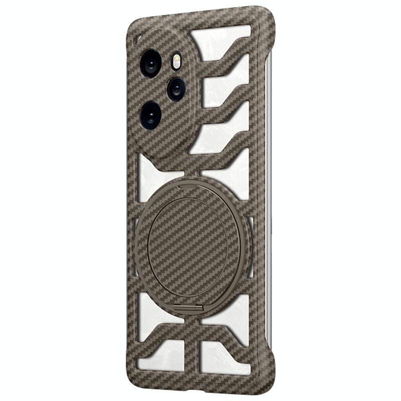 Θήκη τηλεφώνου MagSafe με περιστρεφόμενη βάση από ανθρακονήματα Hollow Carbon Fiber για Honor 100 Pro (Γκρι)