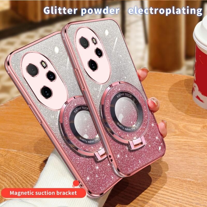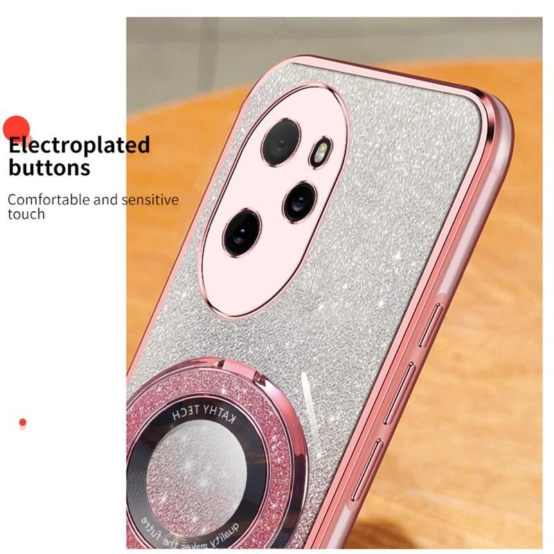 Για Honor 100 Pro Επιμεταλλωμένο διαβαθμισμένη Glitter στρογγυλή κάτοχος TPU τηλέφωνο υπόθεση (μωβ)