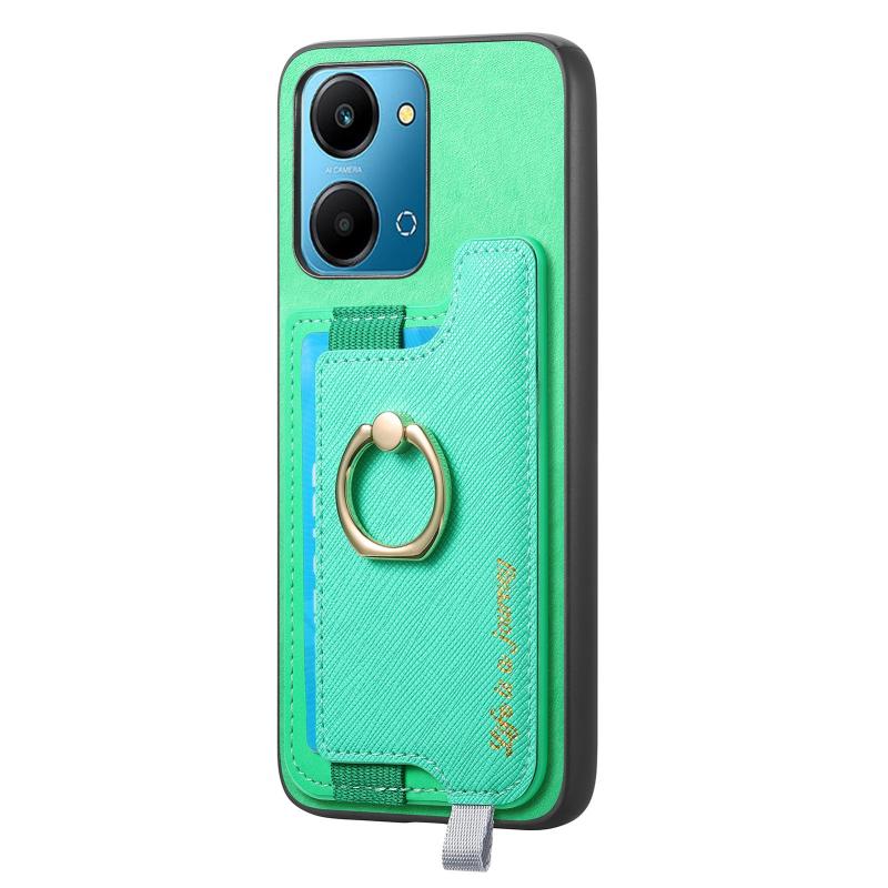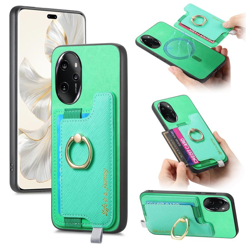 For Honor 100 Pro Retro Magsafe Cross Leather Ring Holder Card Bag Phone Case(Green)