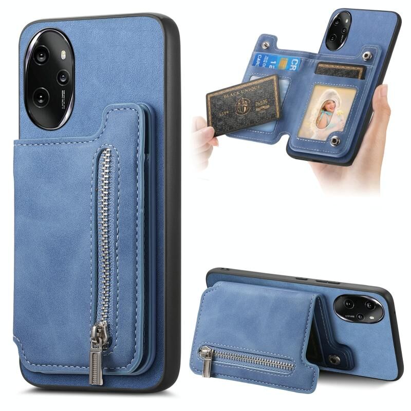 Θήκη Honor 100 Pro Retro MagSafe με Δερμάτινο Πορτοφόλι & Κάρτες (Μπλε)
