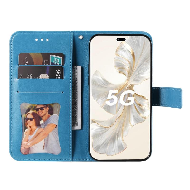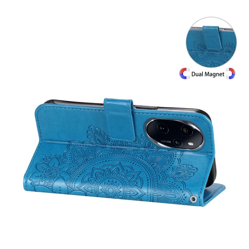 For Honor 100 Pro Seven-petal Flowers Embossing Leather Phone Case(Blue)