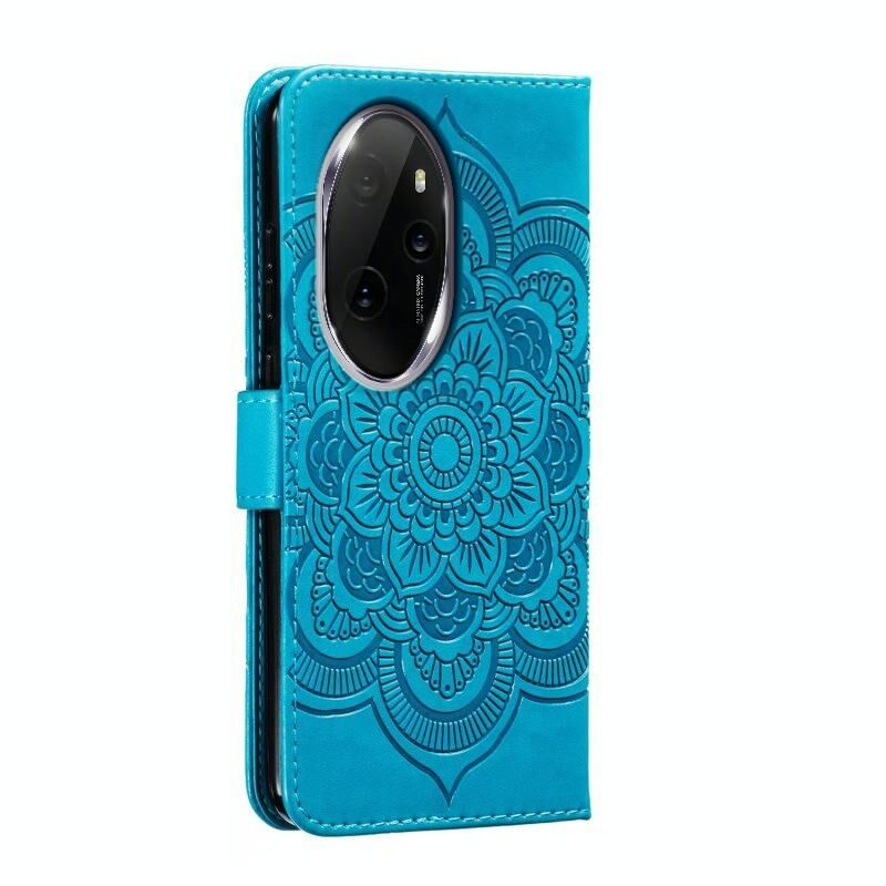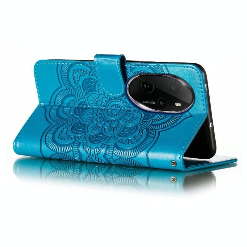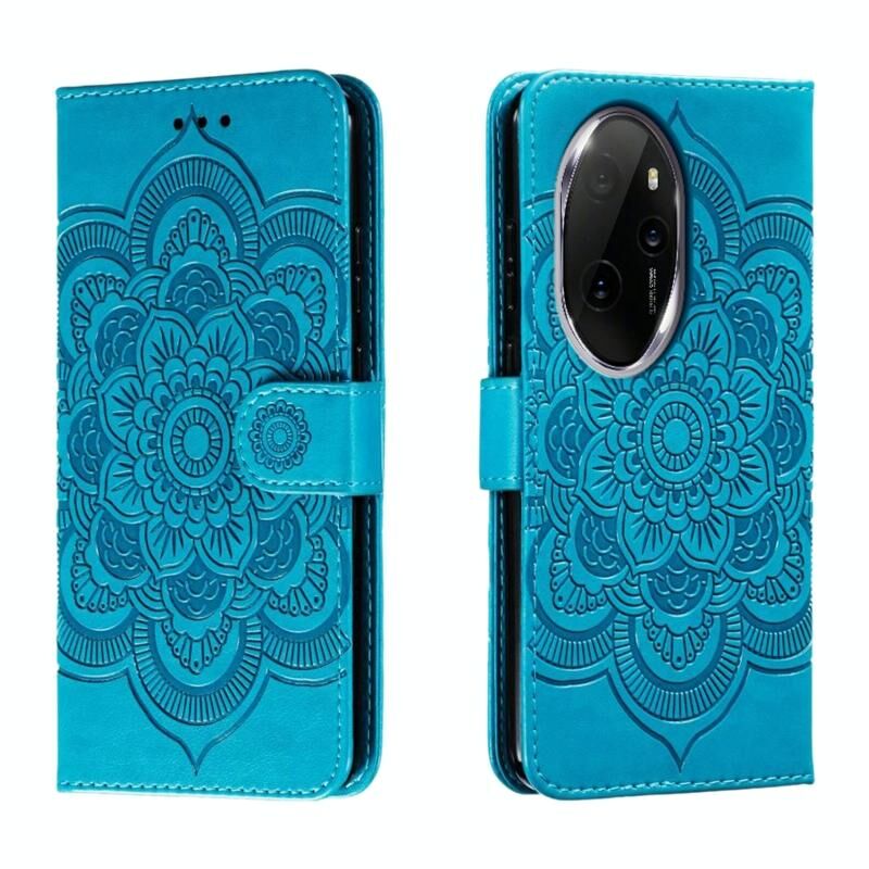 Για Honor 100 Pro Sun Mandala ανάγλυφο μοτίβο τηλέφωνο δερμάτινη θήκη (Μπλε)
